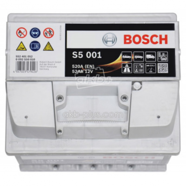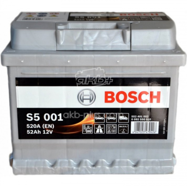 Аккумулятор 6СТ-52A Bosch (S50010), 12V, 52Ah (-/+) Бош евро, 12В, 52Ач, EN470А