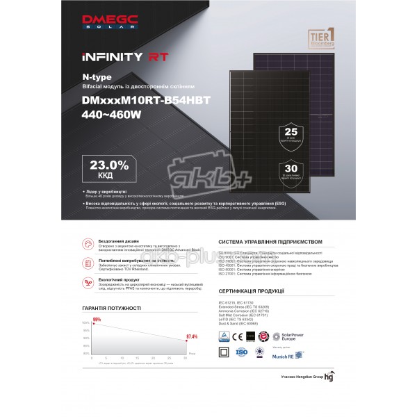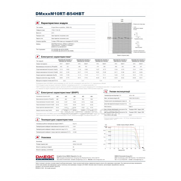 Монокристаллическая солнечная двухсторонняя панель DMEGC DM450M10RT-B54HBT INFINITY-RT n-type Bifacial